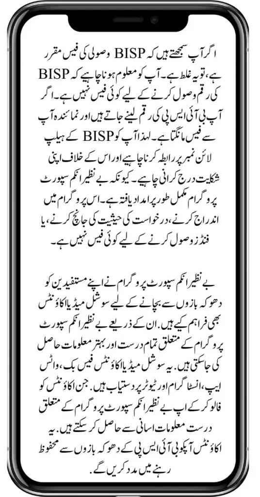 Suppose you receive messages from any number other than the BISP helpline number 8171 telling you that your Benazir Income Support Program amount has been paid. If you want to receive it, you have to submit the fee. So you need to be aware that these messages are fake. If someone asks you for money related to BISP, even through a call, don’t be fooled, and beware of fraudsters.
