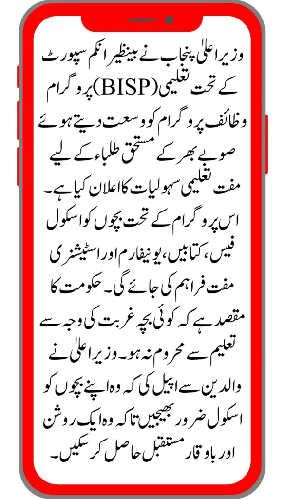 Today, we will provide you with guidance about the Free Education Services of BISP Taleemi Wazaif of CM Punjab. After assuming her post, Punjab Chief Minister Ms. Maryam Nawaz Sharif has offered many services in the field of education. Special attention is being given to the education of girls through these services. They are doing their best to promote educational development in the country. He says that we want to provide all the educational facilities to the children of the poor and deserving people, which the children of rich families get.