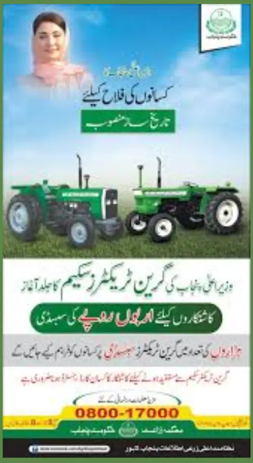 Chief Minister Punjab Maryam Nawaz has announced that farmers who meet certain eligibility criteria will be included in the scheme. This scheme is specifically for farmers; they will be given a subsidy of 15 lakhs on tractors by the government. Beneficiaries who are unable to purchase tractors will be provided with green tractors on an easy, monthly basis. The green tractor scheme registration has been started by PSER.
